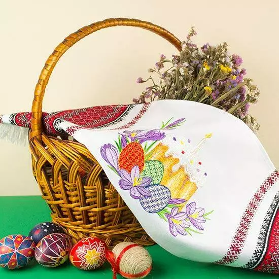 Переливи глянцевих ниток яскравих кольорів надають цій вишитій «картині» особливої святковості! Запашні крокуси, пасхальний хліб та крашанки – великодній рушник виглядає по-сучасному, втім все так же традиційно.