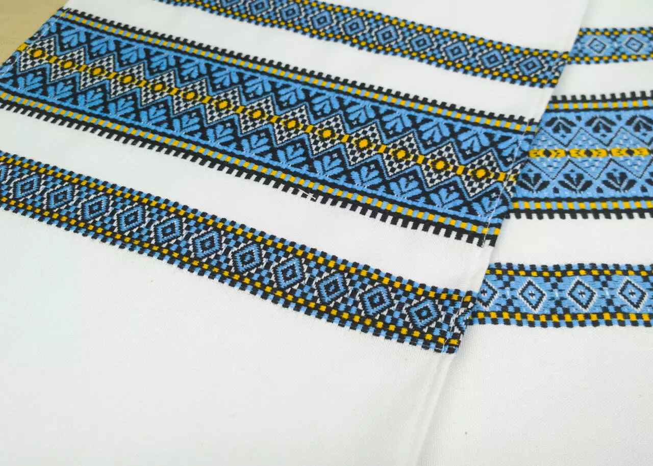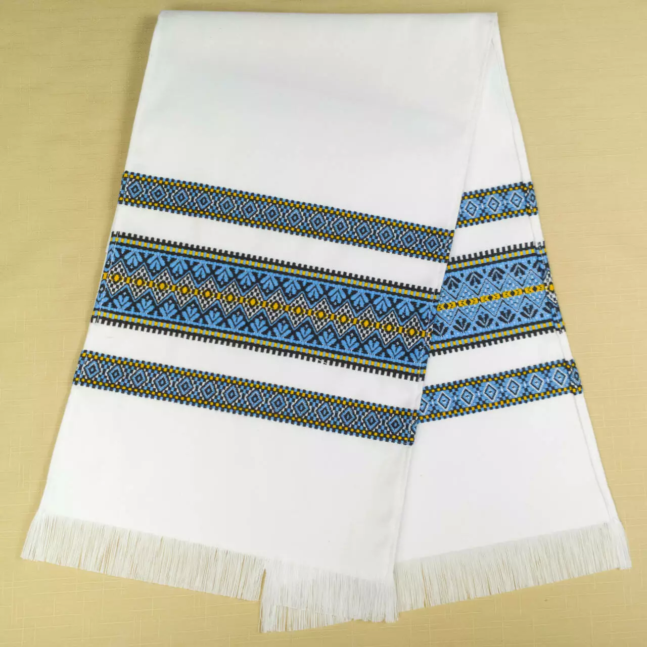 Традиційний синій рушник з вишивкою, який часто використовується в українських обрядах.