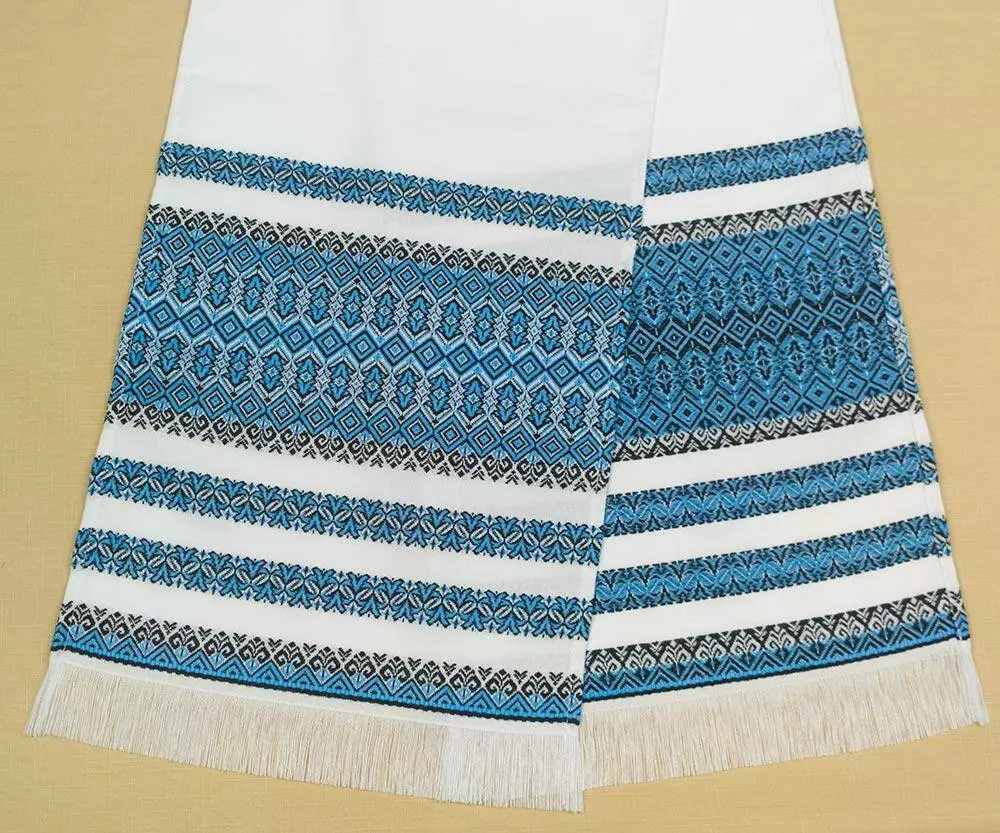 Синій весільний рушник під ноги, який часто використовується в українських обрядах.