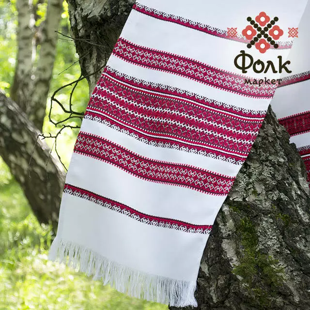 Традиційний червоний рушник, який широко використовується в українських обрядах.