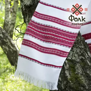 Традиційний червоний весільний рушник, який широко використовується в українських обрядах.