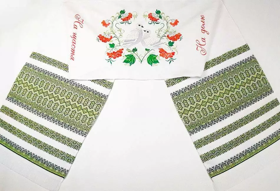 Весільний рушник з вишивкою "На щастя. На частку", який часто використовується в українських обрядах.