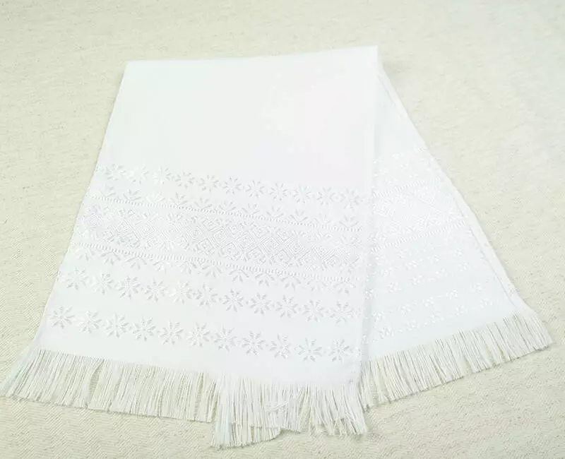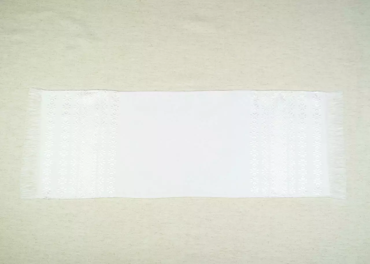 По краях ТКАНИЙ орнамент, посередині біле полотно