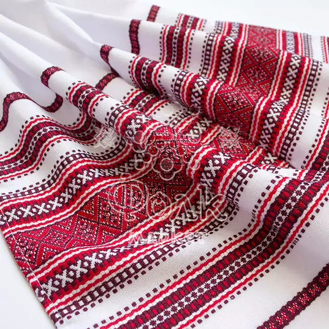 Традиційний червоний вишитий рушник, який широко використовується в українських обрядах.