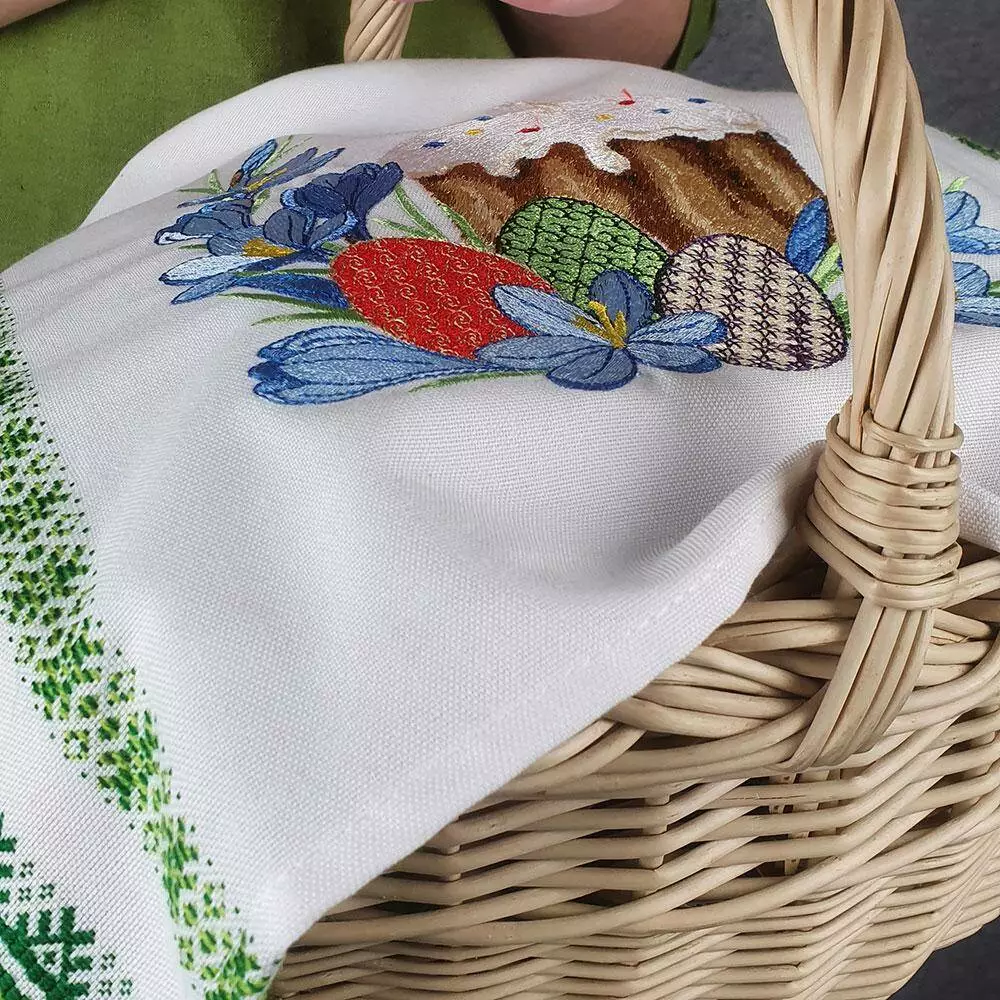 Який Великдень без пасхального хліба і писанок? Це символи, які вже багато років супроводжують це свято. Ми створили композицію з смачненької паски і писанок з традиційними орнаментами, та першими весняними квітами, вишили її на рушнику, який неодмінно прекрасить вашу пасхальну корзину.